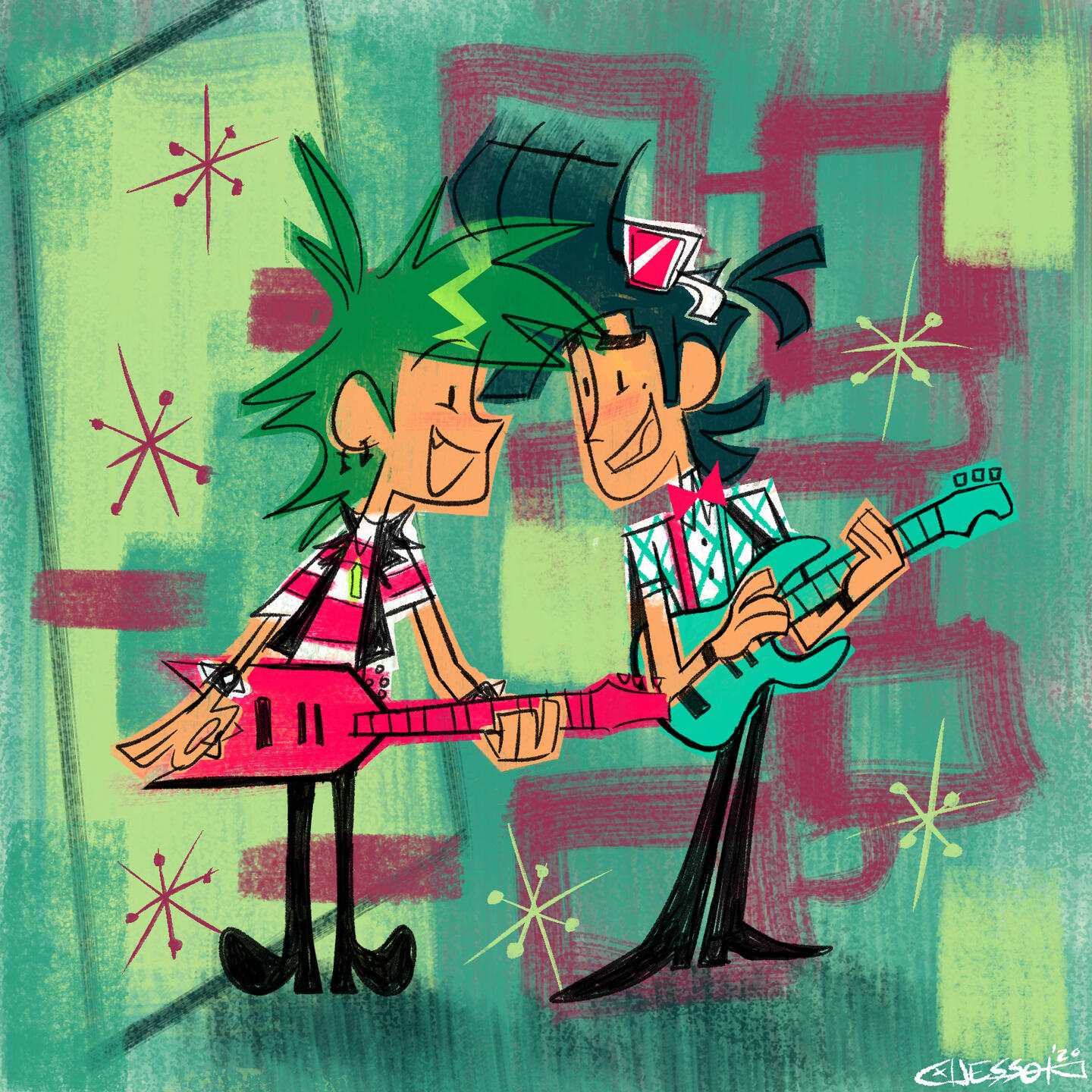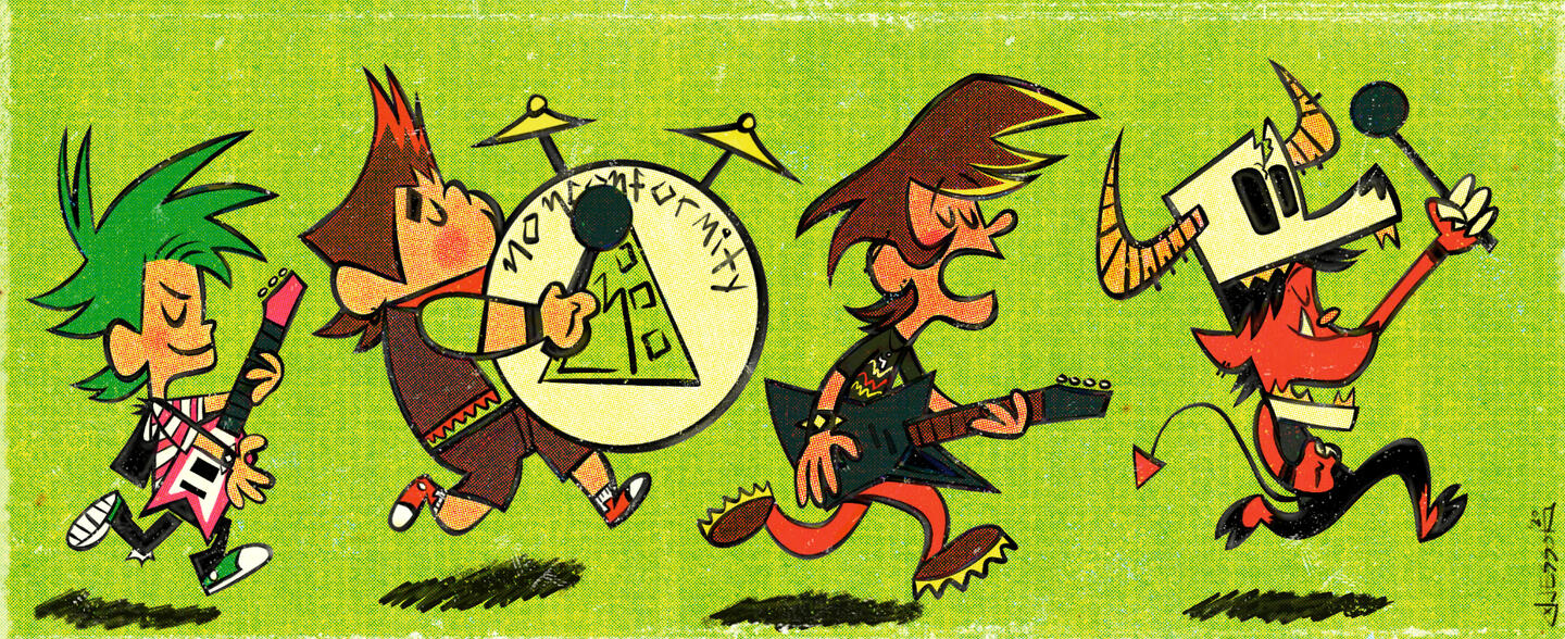Now all of a sudden a whole landslide of events all crashed onto Clay at once. Forming a punk rock band with his 2 close and only friends, getting possessed by a bass shredding demon, discovering the secrets of a mysterious guitar pick, incidentally meeting his favorite rock star of all time (who was presumed dead until then), getting caught up in others' relationship hang-ups, and getting into all kinds of trouble...all to try impressing the girl of his dreams!